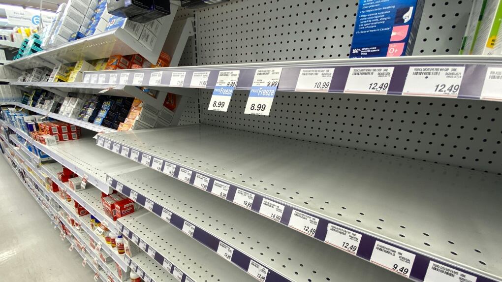 De nombreuses étagères des pharmacies ont été laissées vides, à court de médicaments contre les allergies pour enfants, d'analgésiques pour enfants et maintenant de sirop contre la toux et le rhume pour adultes, de gouttes pour les yeux et de certains antibiotiques oraux, selon des experts de l'industrie.