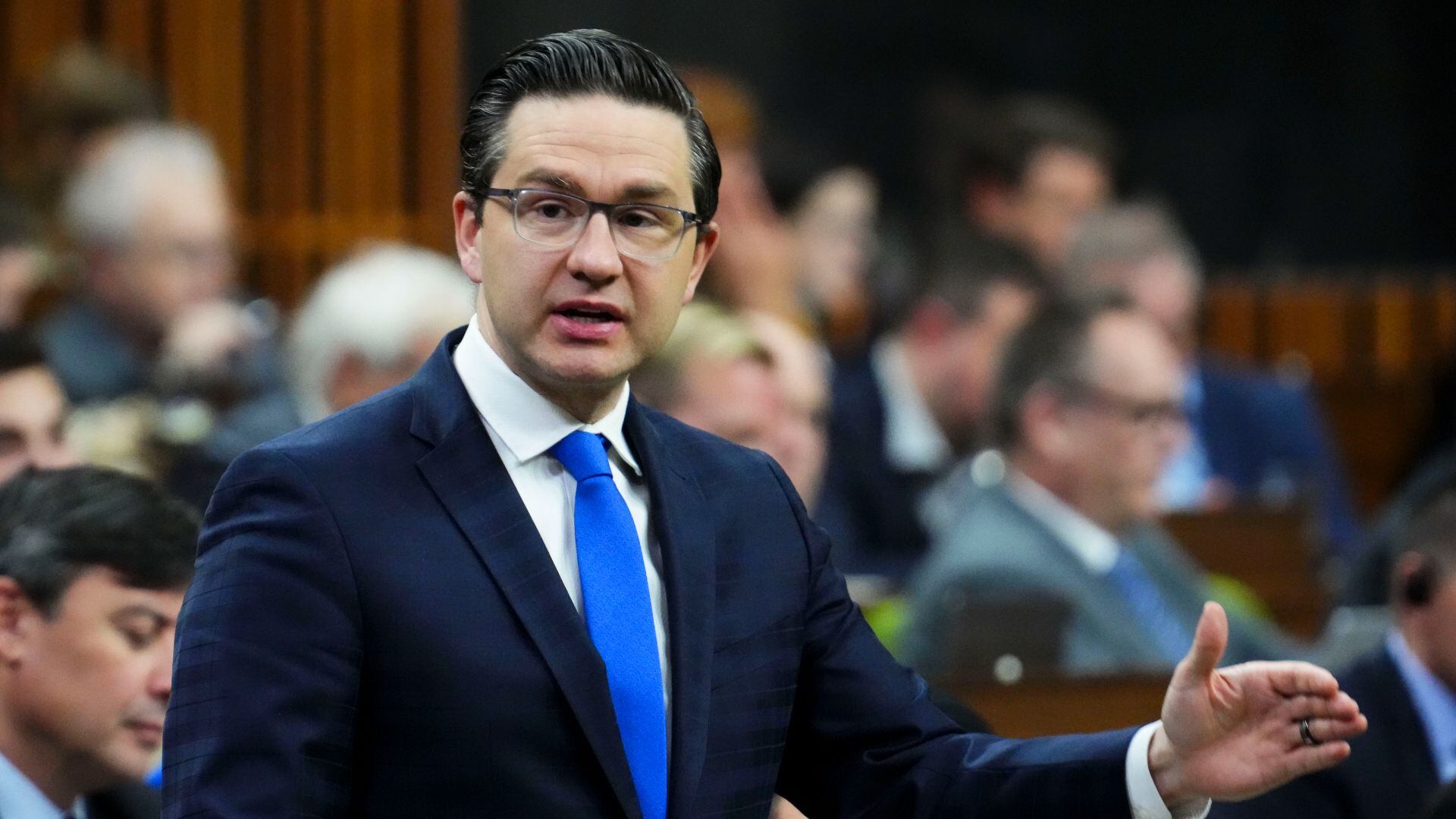 Il est souvent accompagné de ses deux adjoints: Melissa Lantsman, la première députée conservatrice ouvertement lesbienne, qui est d'origine juive, et le député Tim Uppal, un sikh qui a déjà été ministre sous le dernier gouvernement de Stephen Harper.