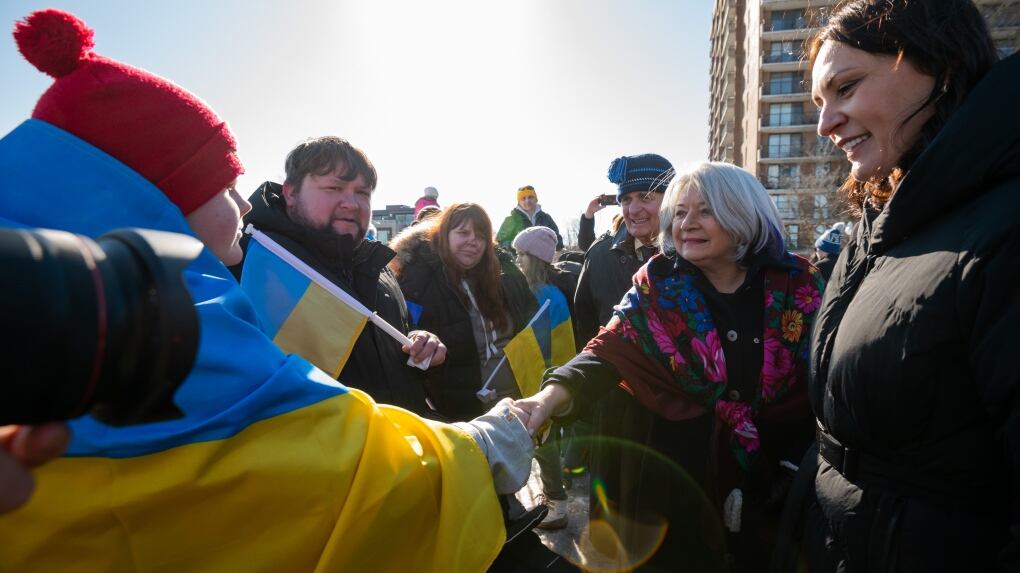 Des centaines de personnes se sont rassemblées lundi à Ottawa pour souligner le 1er anniversaire de l'invasion de l'Ukraine par la Russie.