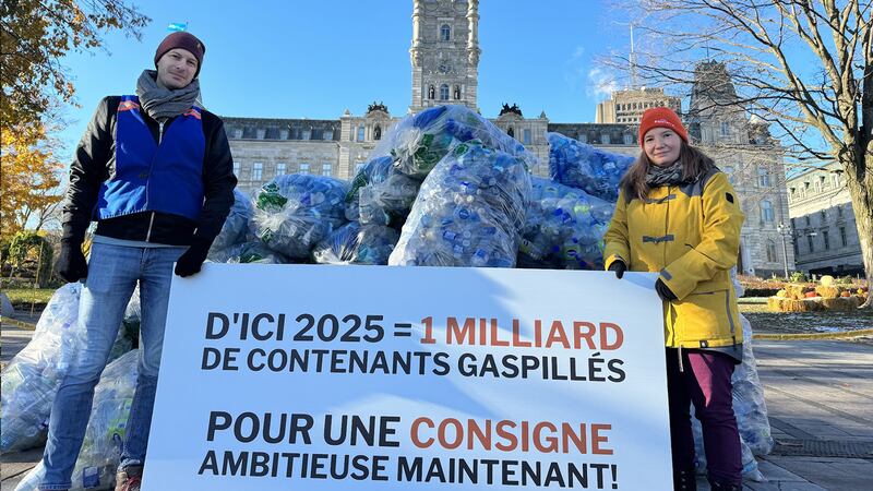 «Au Québec, ce sont plus de 2 millions de bouteilles de plastique par jour qui sont gaspillées dans les sites d’enfouissement, en plus de celles qui se retrouvent dans la nature. Ça, c’est environ 6 000 bouteilles toutes les 5 minutes», a dénoncé Amélie Côté, analyste en réduction à la source chez Équiterre. «On veut rappeler ces chiffres, car il y a une inadéquation entre ce qui est proposé par le gouvernement et ce dont on a besoin pour éviter le gaspillage des contenants de boisson.»