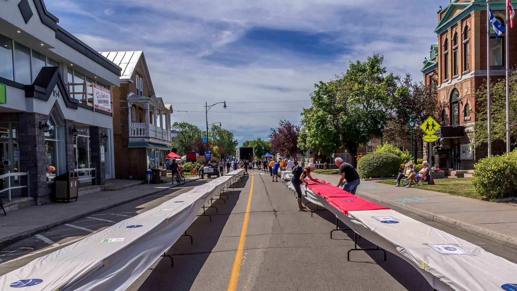 Déjà très tôt mercredi matin, la rue était fermée aux automobilistes et l'équipe de la Traversée s'affairait à mettre sur pied les tables qui accueilleront les citoyens fébriles de renouer avec cet événement.