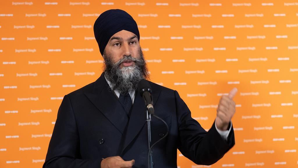 Jagmeet Singh a déclaré aux journalistes à Montréal jeudi qu'il souhaitait que les grands pollueurs paient leur part, mais il a aussi soutenu que les travailleurs ne devraient pas assumer le coût de la lutte contre le changement climatique.