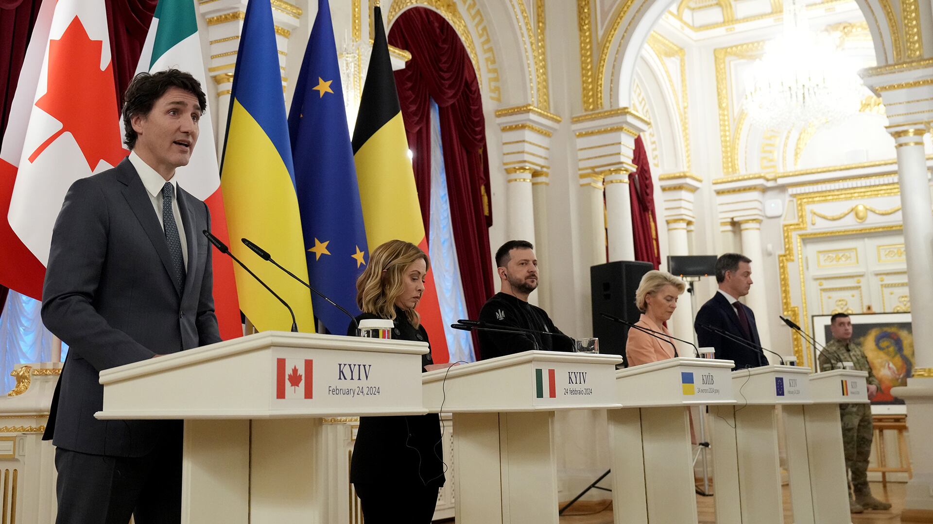 Le premier ministre Justin Trudeau a signé samedi un nouvel accord bilatéral de sécurité avec le président ukrainien Volodymyr Zelensky, alors que plusieurs dirigeants du monde entier se sont réunis en Ukraine pour marquer le deuxième anniversaire du début de l'invasion russe dans ce pays.