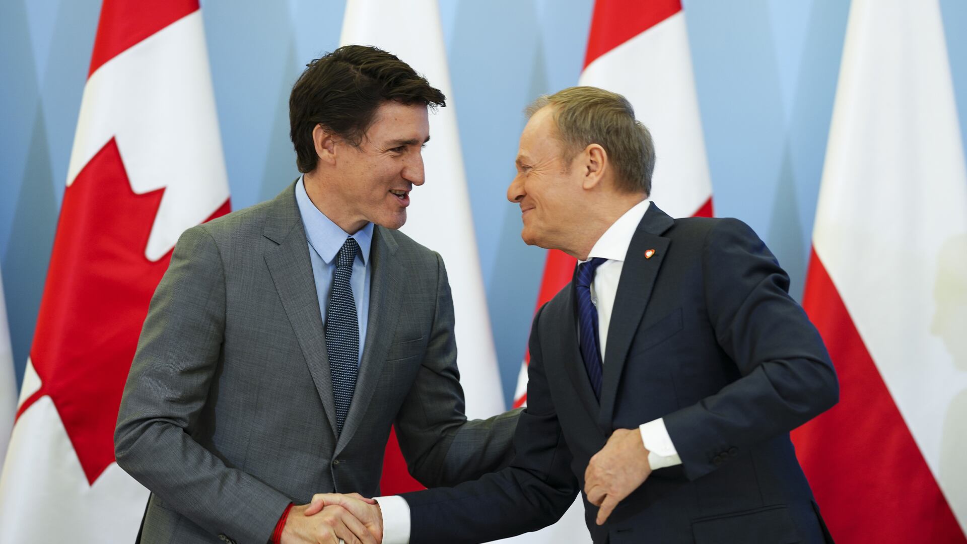 Justin Trudeau et Donald Tusk se sont rencontrés à Varsovie mardi après avoir rejoint la veille des dizaines d'autres dirigeants mondiaux pour souligner le 80e anniversaire de la libération du tristement célèbre camp de la mort d'Auschwitz-Birkenau, en Pologne.