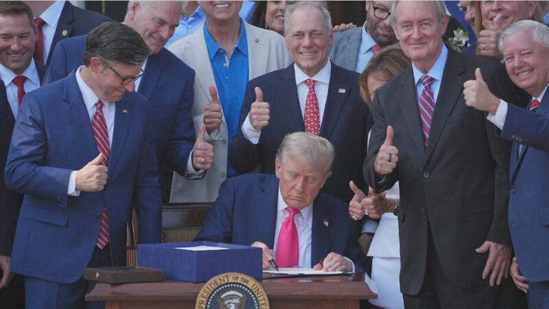 La loi budgétaire tentaculaire honore bon nombre des promesses de campagne de M. Trump: augmentation des dépenses militaires, financement d'une campagne d'expulsion massive de migrants et engagement de 4.500 milliards de dollars pour prolonger les crédits d'impôt accordés lors de son premier mandat.