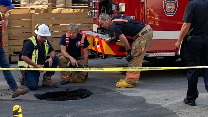 Selon le service des incendies de la ville (SIM), la théorie actuelle est que le camion était arrêté à un feu rouge lorsque la chaussée s'est effondrée sous l'une de ses roues.
