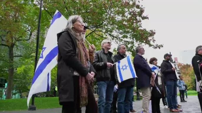 Les participants brandissaient des drapeaux israéliens et dansaient sur de la musique religieuse près de la Place du Canada. Beaucoup dans la foule faisaient partie du groupe Christian Coalition for Israel, qui a organisé l’événement. S’exprimant à CTV News lors de la manifestation, l’organisateur Dr Paul Saba a déclaré que l’objectif est de manifester la solidarité avec la communauté juive.