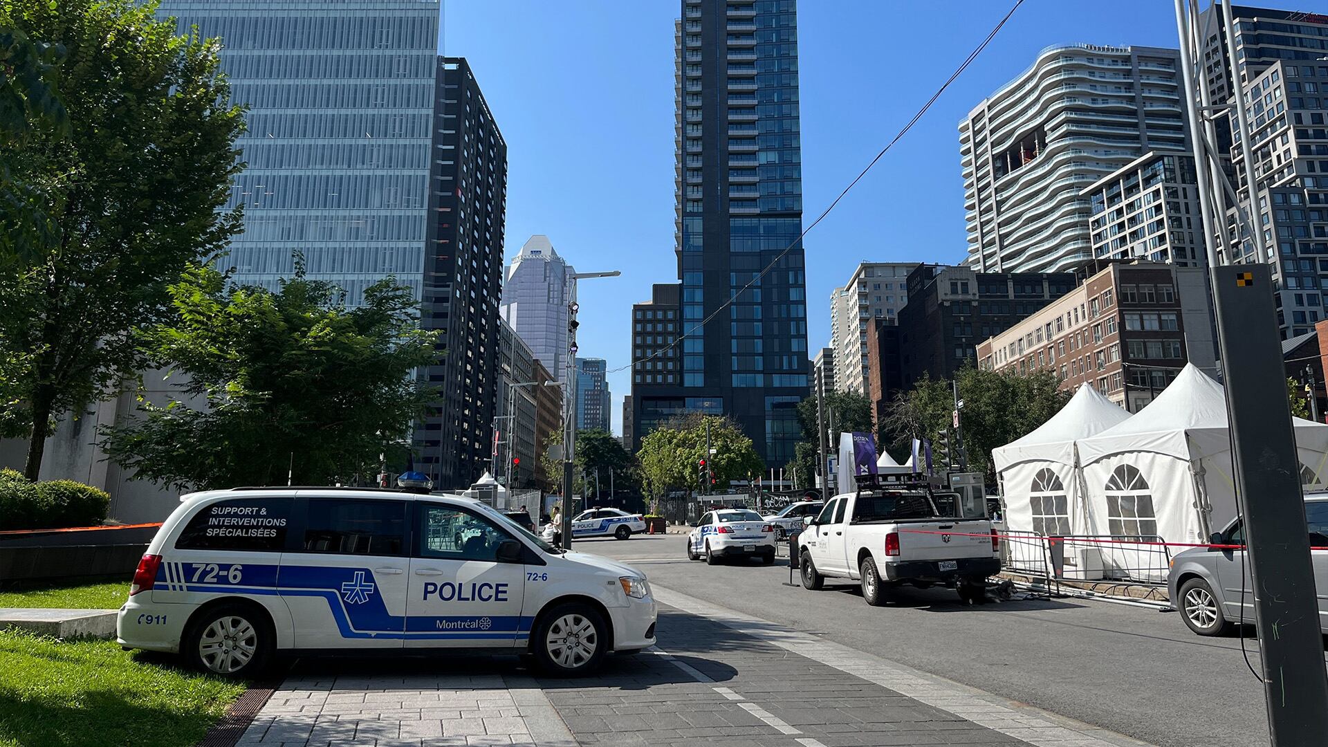 «Les enquêteurs sont déjà sur les lieux, où un poste de commandement a été établi. Les enquêteurs sont assistés des techniciens en identité judiciaire pour faire l'analyse de la scène, avoir plus d'informations et visionner des caméras de surveillance pour en savoir plus sur les circonstances et (obtenir des) détails concernant le suspect qui aurait été impliqué dans cet événement», a ajouté l'agent Brabant.