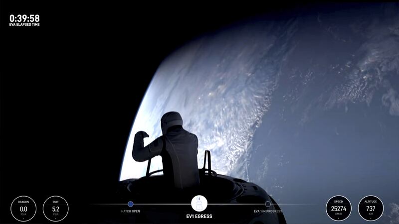Ils ont réalisé la première sortie privée dans l'espace alors qu'ils étaient en orbite à près de 740 kilomètres au-dessus de la Terre, soit plus haut que la Station spatiale internationale et le télescope spatial Hubble. Leur vaisseau spatial a atteint une altitude maximale de 1408 kilomètres après le décollage de mardi.