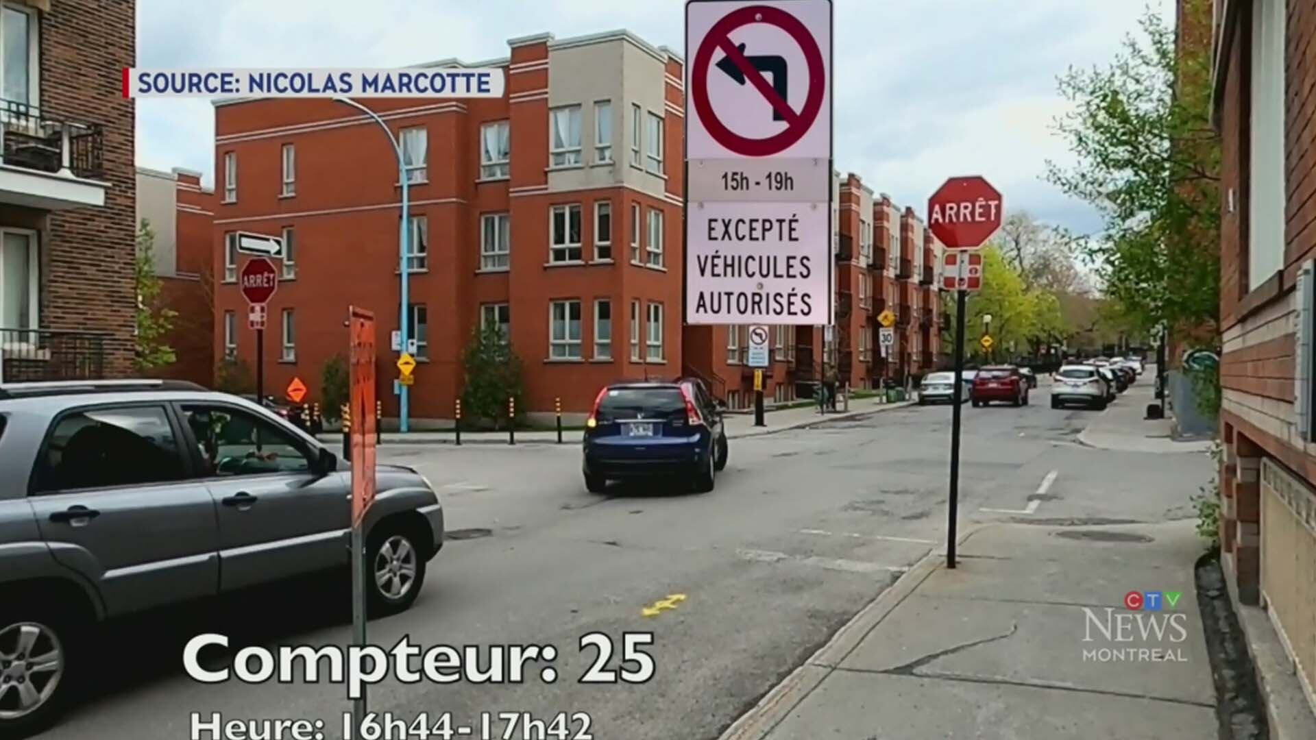 Il a pris une autre vidéo à l'angle des rues Sherbrooke et Wurtele, près d'une école secondaire. Il a enregistré 58 voitures effectuant des virages illégaux.