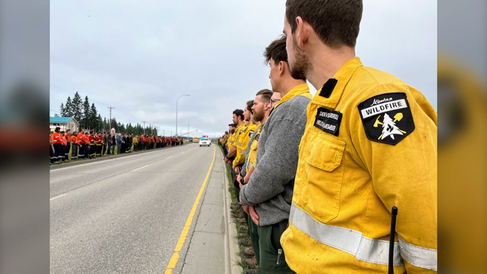 «Aujourd'hui, nous pleurons la perte de l'un des nôtres», a déclaré Alberta Wildfire, dans une publication sur le réseau social X avec des photos du sombre cortège sous un ciel gris.