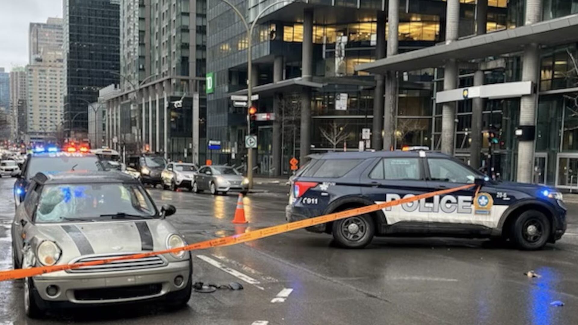 Le Service de police de la Ville de Montréal (SPVM) a reçu plusieurs appels 911 à 2 h 15 pour signaler l'incident survenu à l'angle du boulevard René-Lévesque et de la rue Crescent.