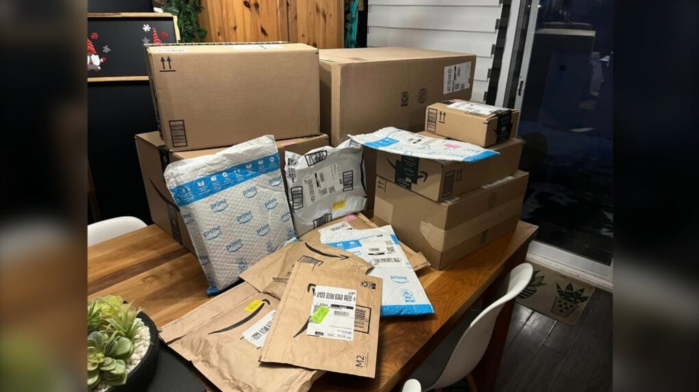 Puis, lundi, une camionnette de livraison est arrivée avec environ 35 colis devant sa porte.