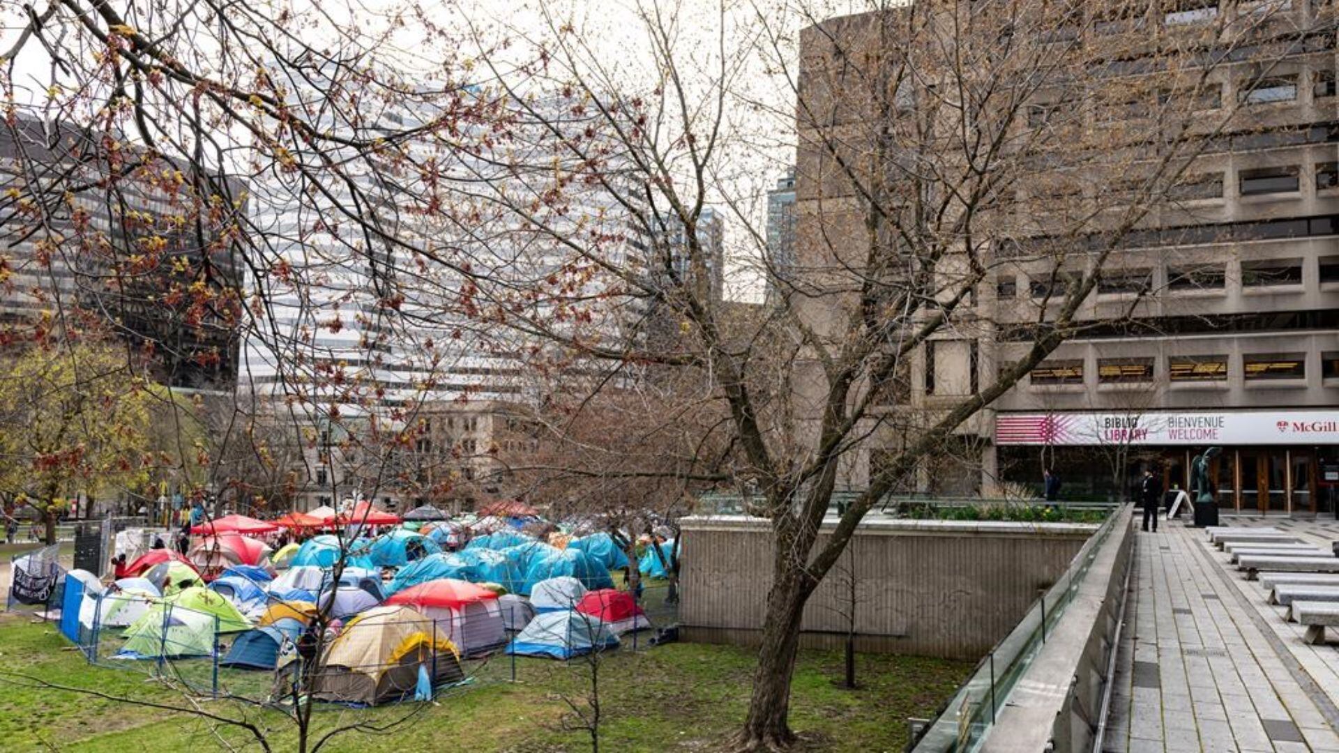 Des manifestants propalestiniens ont installé des campements sur certains campus universitaires au Canada, dont celui de l'Université McGill, à la suite d'une vague d'actions observée sur des campus américains.