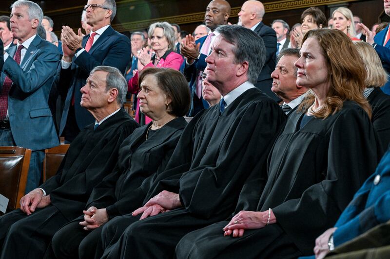 Le président américain a même semblé esquisser un sourire en s’approchant de la juge Elena Kagan, pourtant parmi ceux qui ont voté pour invalider une bonne partie de ses droits de douane, tout comme John Roberts et Amy Coney Barrett, également présents mardi.