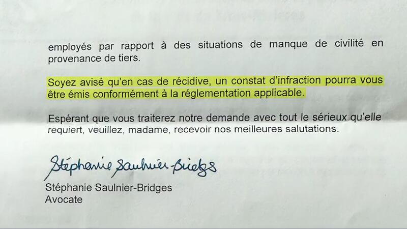 En cas de récidive, Mme Hamel serait passible d'«un constat d'infraction», est-il écrit dans la mise en demeure.
