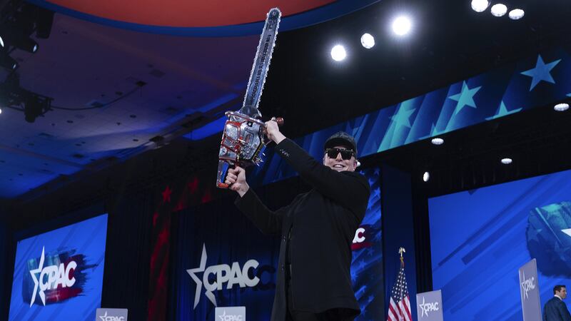 Elon Musk a commencé son apparition en brandissant la tronçonneuse, qui lui avait été offerte par le président argentin, Javier Milei, qui a déjà fait un geste d'éclat identique.