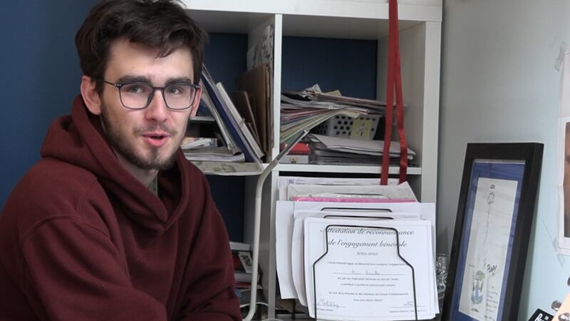Myro Bataille est un élève de secondaire 5 vivant à Ahuntsic en compagnie de sa famille nombreuse. Il a décidé lundi d’avancer ses devoirs dans le but de profiter de quelques journées de congé pendant la grève.