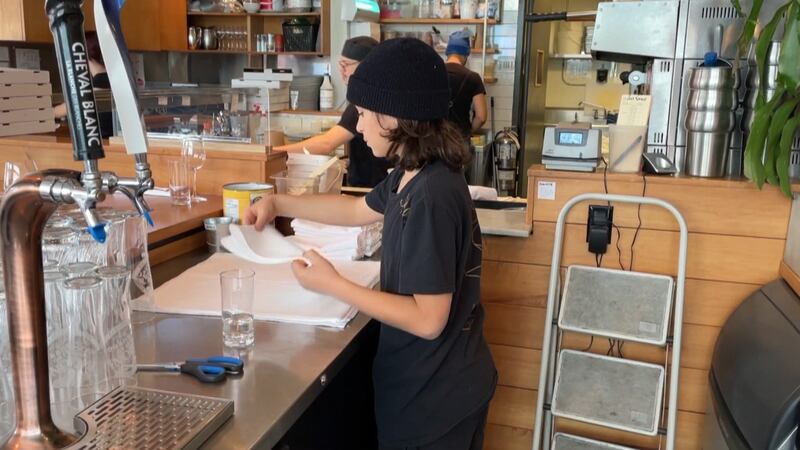 De son côté, les enfants du propriétaire de la pizzéria Stella viennent en aide à leur père pendant les journées de grève.
