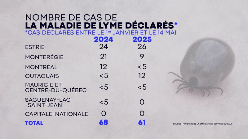 Depuis le 1er janvier 2025, 61 cas de la maladie de Lyme ont été déclarés au Québec, dont 26 seulement en Estrie
