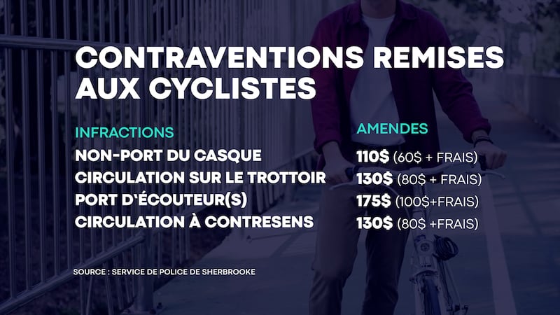 Même si les policiers préconisent l'avertissement avant de sévir, les contrevenants s'exposent tout de même à certaines amendes s'ils ne respectent pas la réglementation en place. «Que ce soit un vélo électrique ou un vélo à pédales, les moins de 18 ans doivent porter un casque. C'est l'article qu'on surveille le plus au SPS», a relaté le sergent Danny O'Connor.