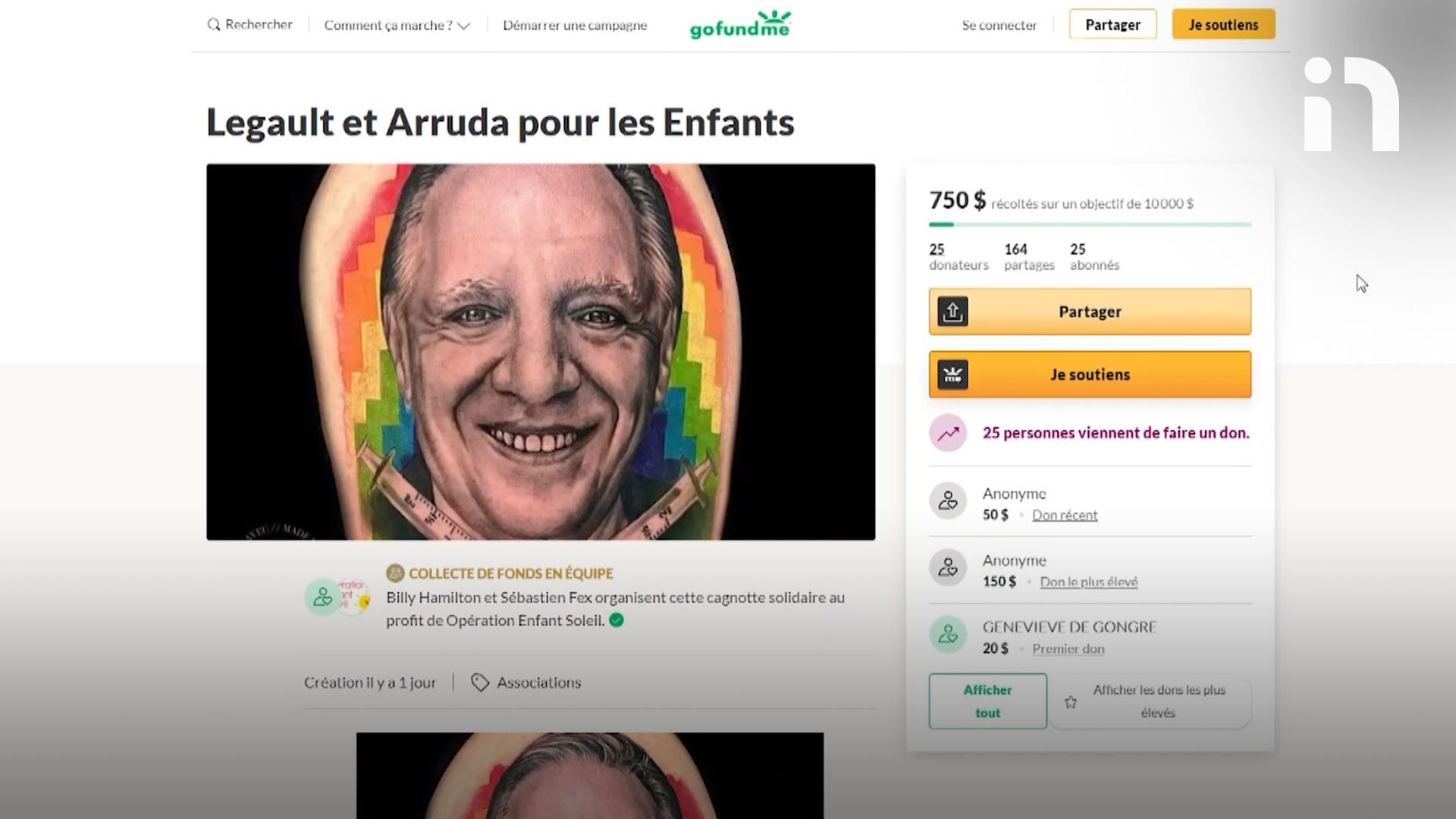 Après François Legault sur le bras, un père de famille propose de se faire tatouer le Dr Horacio Arruda pour Opération Enfant soleil.
