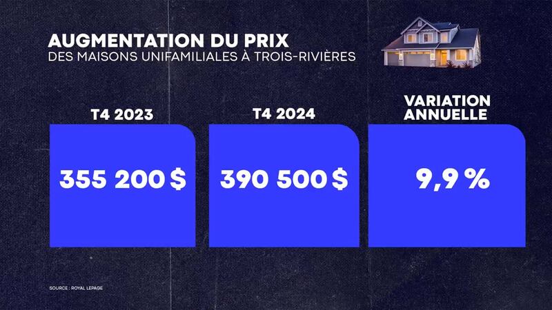 En janvier dernier, le prix médian d'une maison unifamiliale à Trois-Rivières était d’un peu plus de 390 000 $ à la fin de l'année 2024; une hausse de près de 10 % par rapport à 2023.
