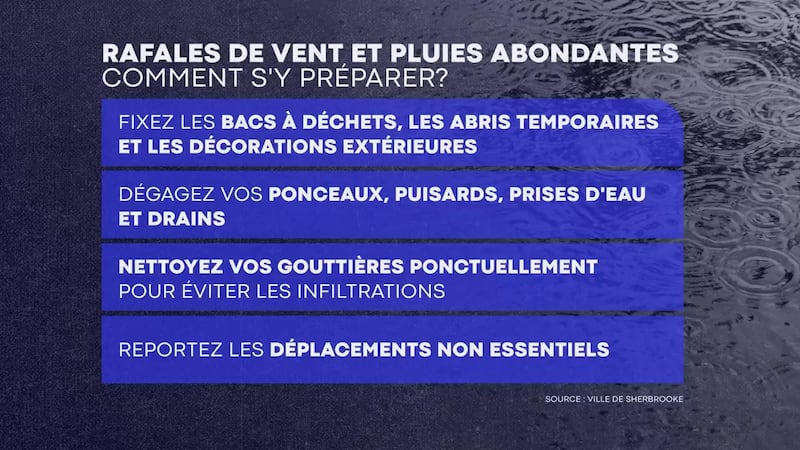 En raison des rafales prévues dans la région, la Ville de Sherbrooke recommande entre autres de ranger ou d’attacher solidement ce qui pourrait être emporté par le vent comme les bacs à déchets ou encore les abris temporaires.