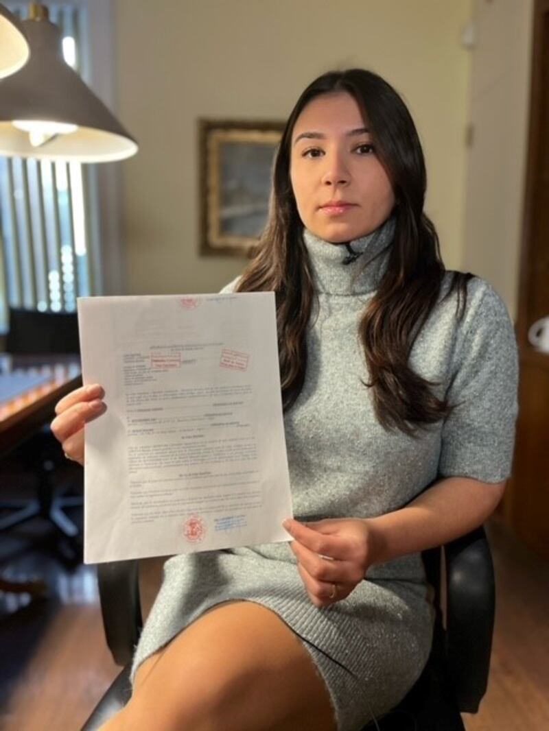 Miriam a tous les diplômes nécessaires et avait réussi une première enquête. Mais il semble que le passé lointain de son oncle qui a été déporté en Algérie et qu’elle a vu la dernière fois alors qu’elle était enfant, lui ait nui. Pourtant, Mourad Ikhlef a été blanchi. Miriam a d’ailleurs obtenu la preuve de la Cour Suprême, qu’elle exhibe sur cette photo à Noovo Info.