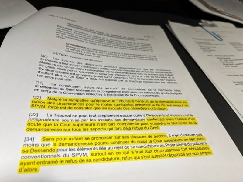 Miriam a d’ailleurs entamé une poursuite de 20 000 $ contre le SPVM. La Cour supérieure a estimé que la bataille au chapitre de son congédiement doit se poursuivre à une instance inférieure, parce que la jeune était syndiquée. La Cour a conclu au passage que le processus d’embauche semblait étrange. «Malgré la sympathie du Tribunal à l’endroit de la demanderesse en raison des circonstances surréalistes […] La cour n’est pas compétente pour entendre la demande. Le juge parle de «circonstances fort nébuleuses ayant entraîné le refus de sa candidature».